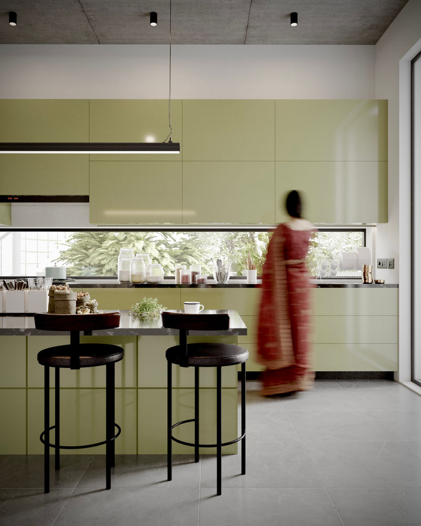 Inside, the "calm" is curated through light and volume. Sunlight washes over the textured walls, highlighting the imperfections of the earth and the craftsmanship of the brick-vaulted ceilings. The palette is muted and restorative—seen in the sage green cabinetry and the natural timber accents—allowing the inhabitants to disconnect and recharge.