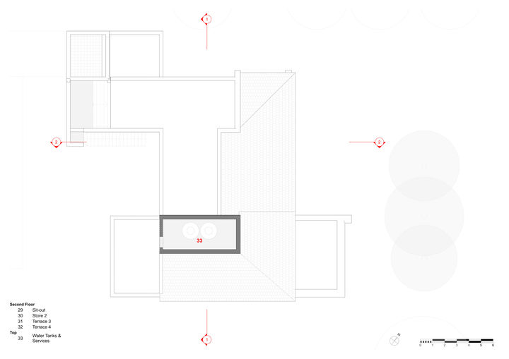 The site offered a unique biological constraint: three mature trees—a Gulmohar and two African Tulips—standing as guardians on the north-eastern edge. Rather than clearing the slate, the architecture acknowledges these sentinels. The built mass negotiates with the landscape, retreating at the upper levels to allow the morning sun to drench the front lawn, while creating a deep, shadowed courtyard in the south-west for privacy. The result is a site plan where no space is residual; every inch is an active participant in the daily ritual of living.